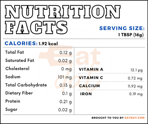 Nutritional profile for hot sauce (1 tbsp, 16g):